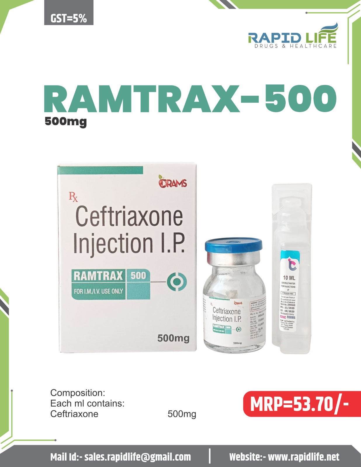 / Ceftriaxone Sodium 500mg Injection