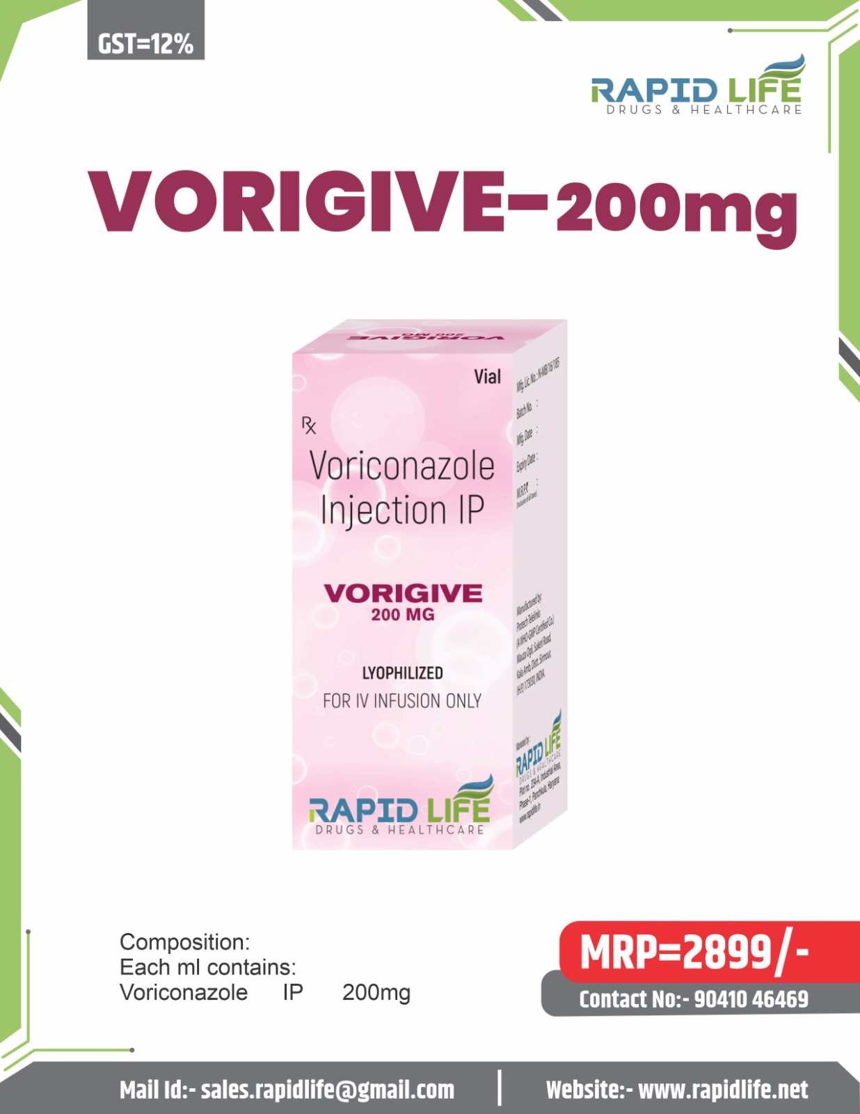 | Composition | Voriconazole for Injection 200 mg (Lyophilized) |