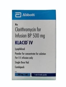 - Klacid IV Injection is a category of medicines called macrolide antibiotics, indicated for the treatment of bacterial infections like bronchitis, pneumonia, throat, sinus, skin, and soft tissue infections.